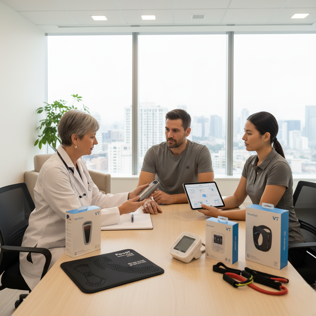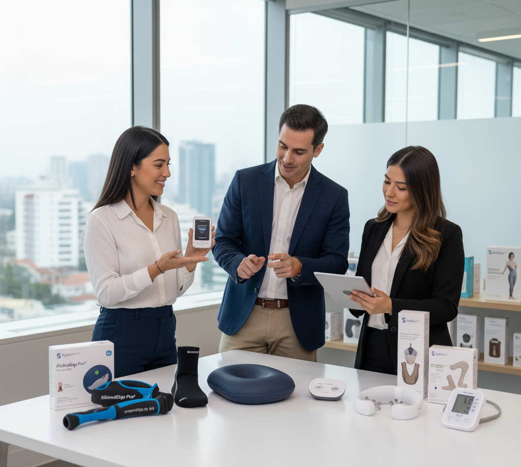 Controle su bienestar con dispositivos fáciles de usar, diseñados para la vida diaria. Desde monitores portátiles de ECG hasta soportes de compresión ergonómicos, nuestros productos combinan tecnología avanzada con comodidad para ayudarle a vivir más sano, moverse con libertad y sentirse mejor cada día.